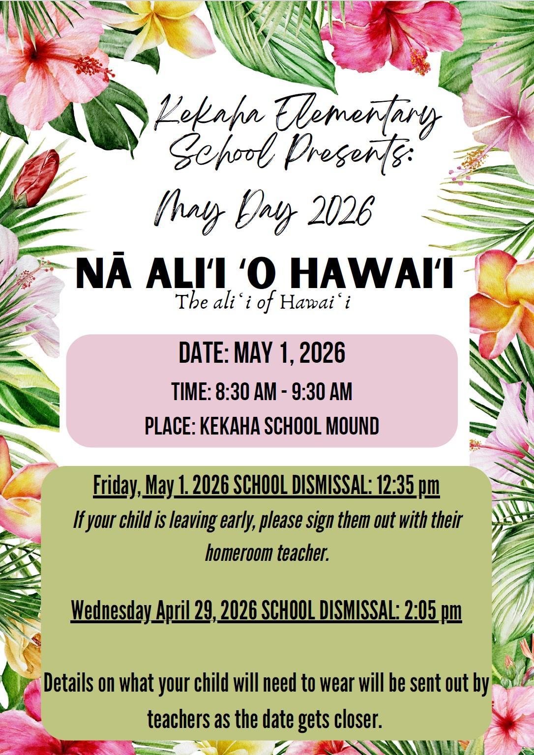 Friday, May 1. 2026 SCHOOL DISMISSAL: 12:35 pm